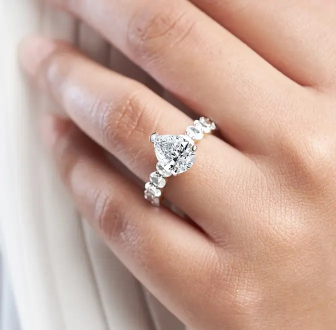 White gold, available in 14KT and 18KT, is one of the most popular metal choices for lab grown engagement rings due to its lasting durability and shiny platinum-like lustre.